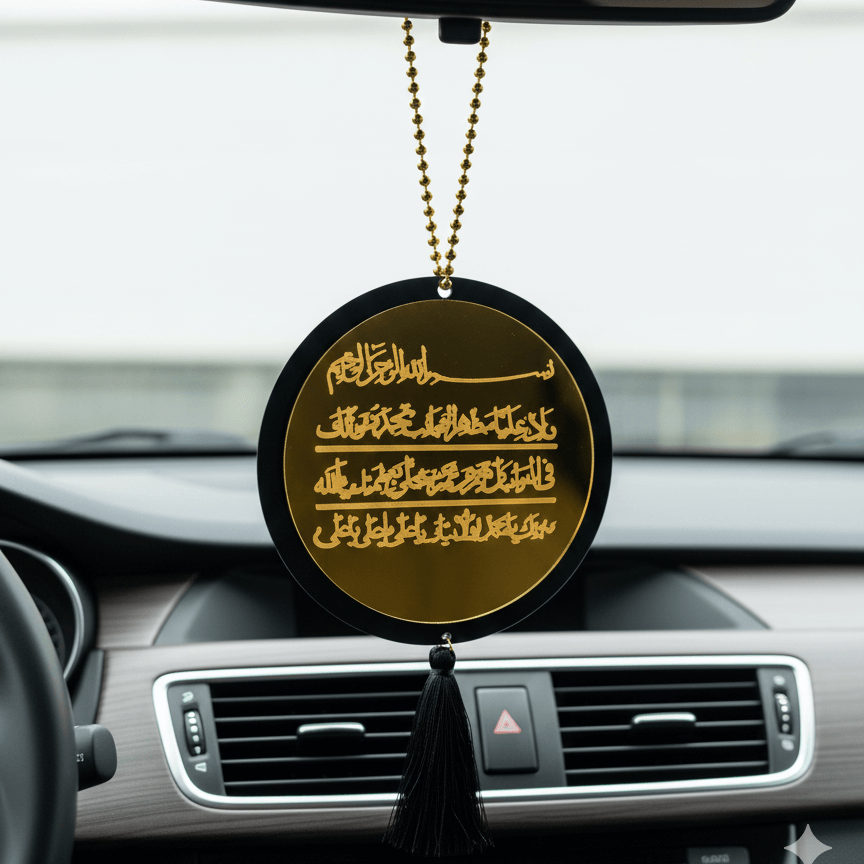 A beautifully crafted double-sided car hanging featuring “Ali Waris” on one side and “Ya Ali Madad” on the other — a meaningful reminder of strength, courage, and spiritual support.