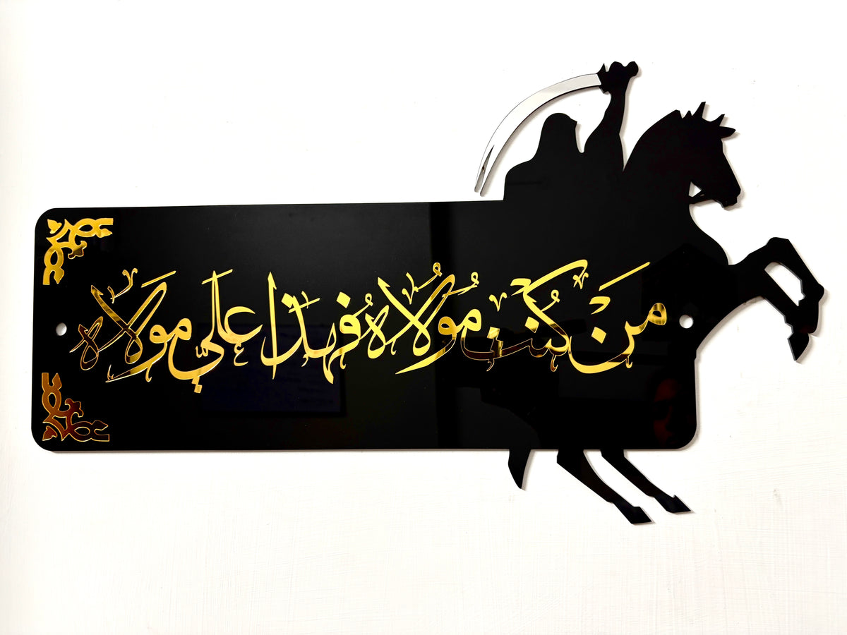 Bring spiritual elegance into your home with this powerful Hadith-e-Ghadeer wall décor. Featuring the iconic declaration in beautiful Arabic calligraphy: