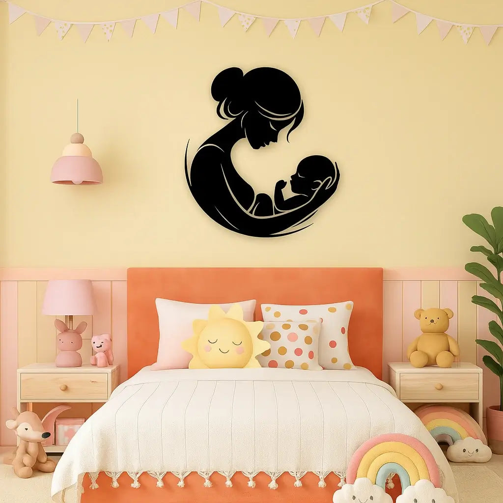 mother and baby wall art, MDF mom and child décor, nursery wall decoration, new mom gift idea, minimalist motherhood silhouette, mother love artwork