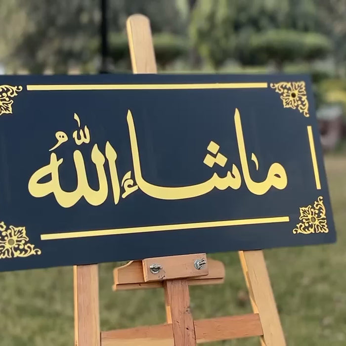 Elevate your home décor with this beautifully crafted MashaAllah wall frame, designed to bring elegance, spirituality, and a luxurious modern touch to any space. Made with a premium black acrylic base and adorned with high-gloss gold mirror acrylic calligraphy, this piece reflects light beautifully and adds a rich, reflective shine to your walls.