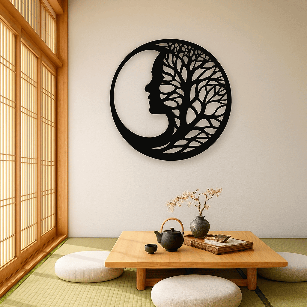 This captivating piece blends the grace of a woman’s silhouette with the strength and flow of a tree—symbolizing growth, wisdom, and inner peace. Enclosed in a perfect circle, it brings a sense of harmony and balance to any space. Its clean, modern design adds an elegant touch without overwhelming your décor.