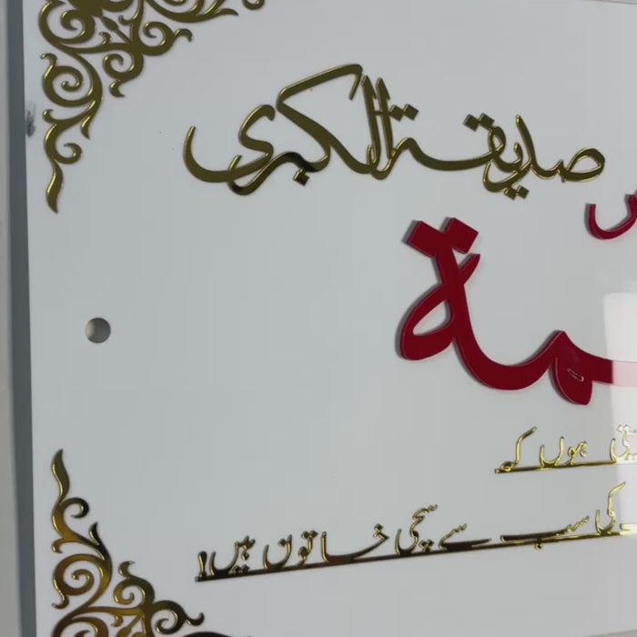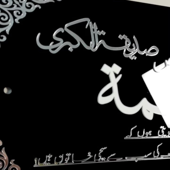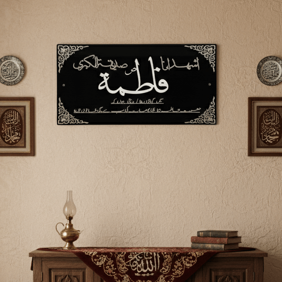 Honor the noble status of Sayyida Fatima az-Zahra سلامُ الله علیها with this beautifully crafted acrylic wall frame. The piece features the powerful testimony “Ashhadu Anna Fatimatus Siddiqa Tuz Zahra”, a phrase that reflects her purity, truthfulness, and divine light.